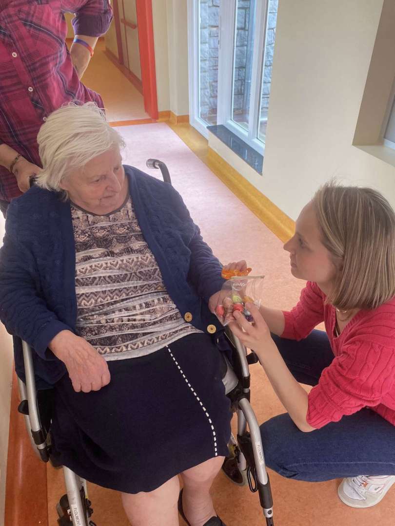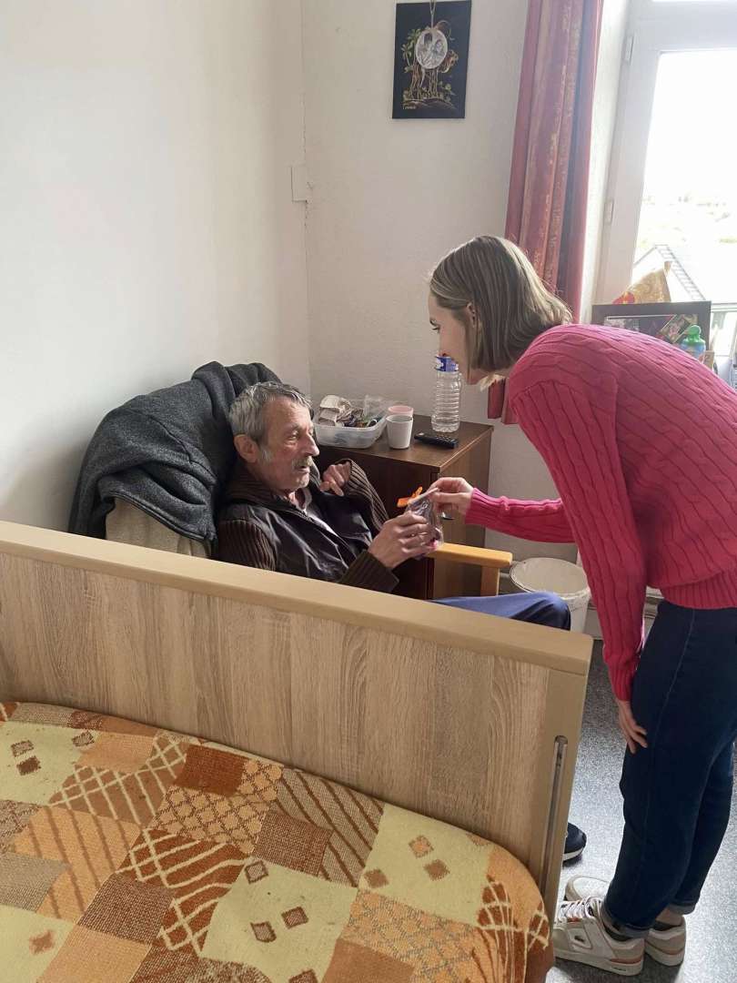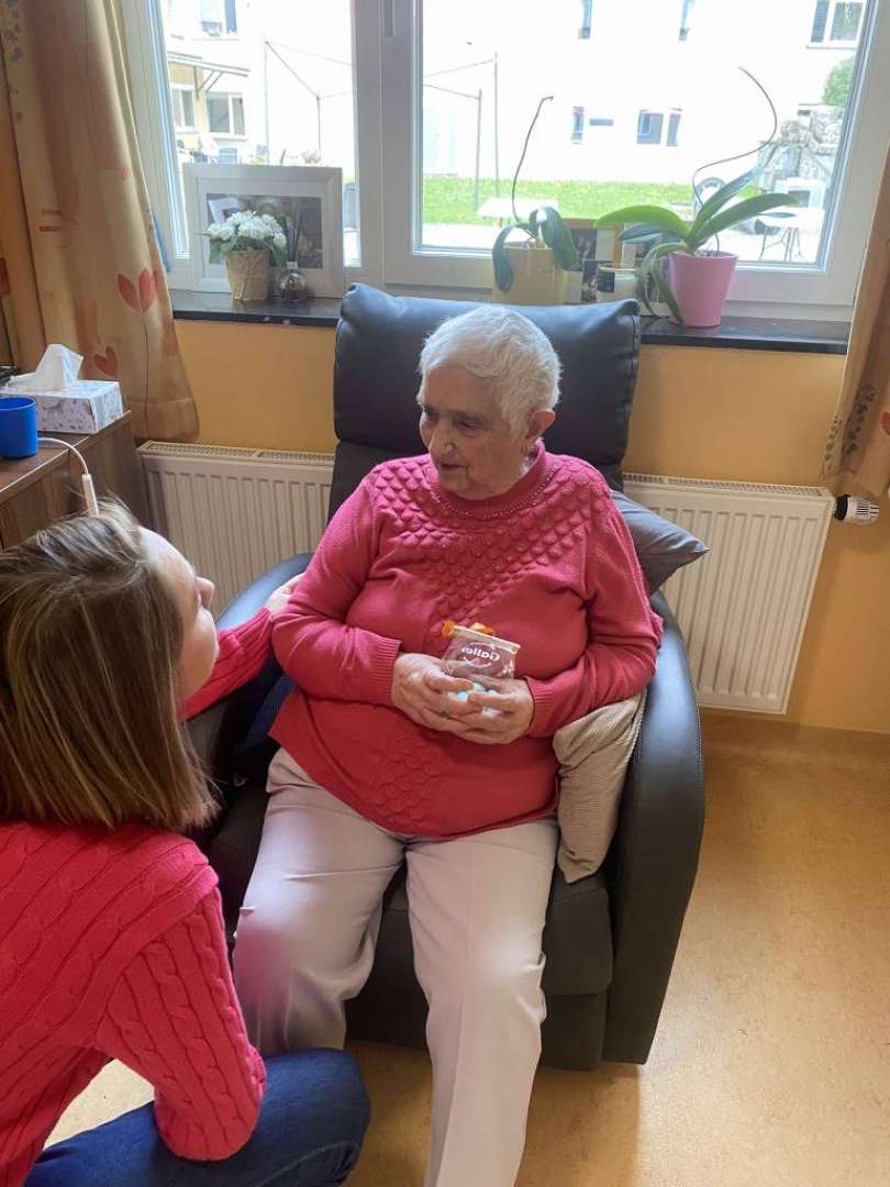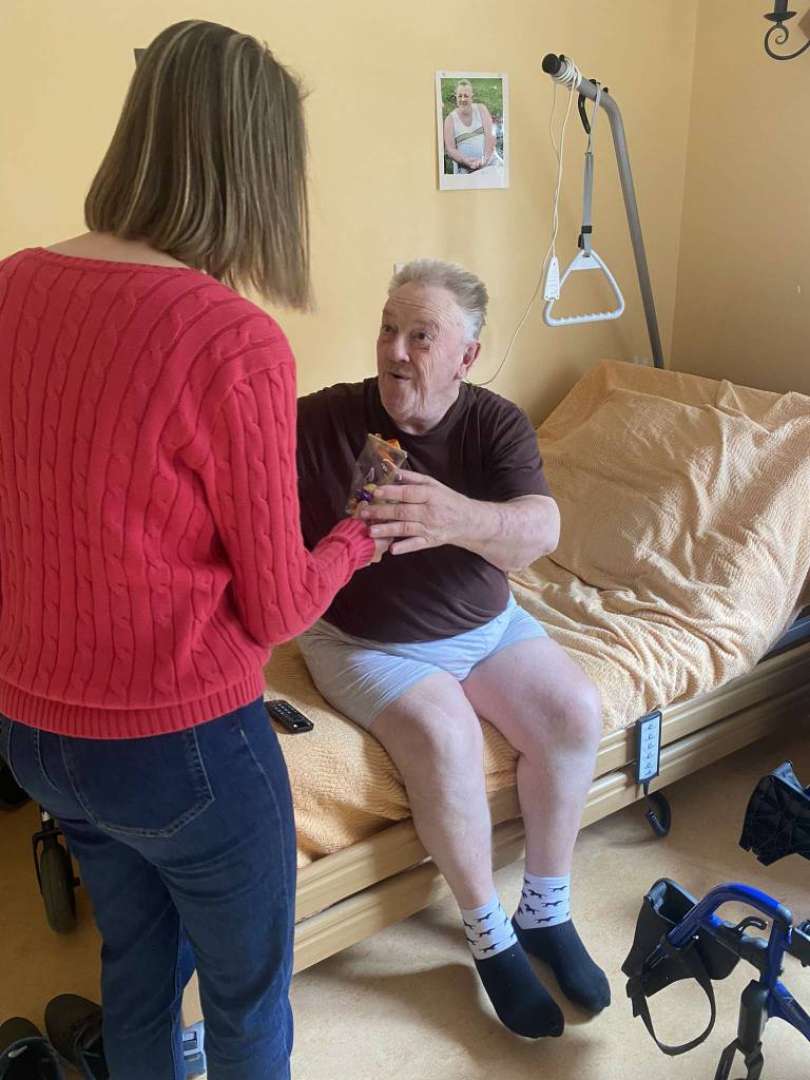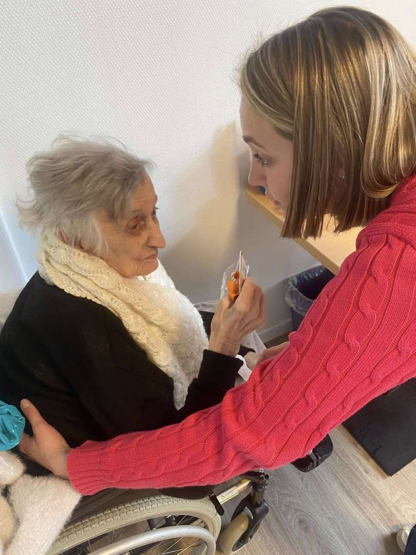 Dès le matin, l'équipe vêtue de rose printanier a sillonné les couloirs. Chaque résident, qu'il soit en fauteuil, au lit ou déjà installé dans le salon, a reçu son présent personnalisé. Le nom inscrit sur l'étiquette a rendu l'instant encore plus chaleureux. Cette distribution chocolats résidents s'est déroulée dans le respect du rythme de chacun.